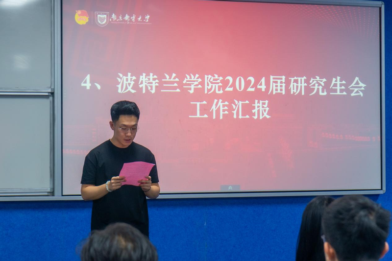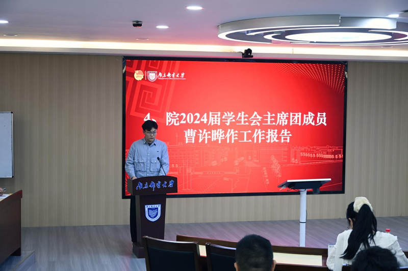 学院2024届学生会席团成员曹许晔以“守正创新担使命,服务奉献启新程”为主题作工作报告,系统回顾了过去一年学生会的各项工作。依托于学院特色与专业背景,学生会在过去一年成功打造了众多形式多样、格调高雅且覆盖广泛的品牌活动,并在多项文体赛事中斩获重要奖项,成果丰硕。同时,他也反思了当前工作中存在的不足,主要包括部门职能有待优化、品牌活动影响力与参与度尚需提升等。研究生会主席团成员王骏腾重点介绍了研会在过去一年中的骨干培养与活动参与情况,并指出了在促进两校区联动方面的不足。展望未来,他提出研究生会将着力于弥补跨校区联动的短板,致力于构建高效协同、资源共享的工作格局,为学院发展贡献更大的研会力量。