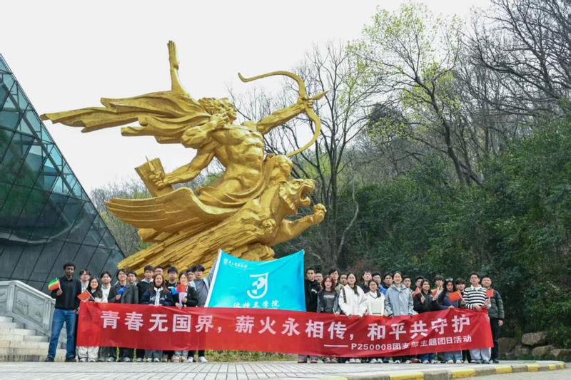3月26日,支部全体团员携手海外教育学院留学生一同前往南京抗日航空烈士纪念馆,向航空英烈们敬献鲜花。活动中,团员们发挥专业语言优势,用中英双语深情讲述抗战历史与烈士的英雄事迹,让红色故事跨越语言障碍,让和平理想深入人心。